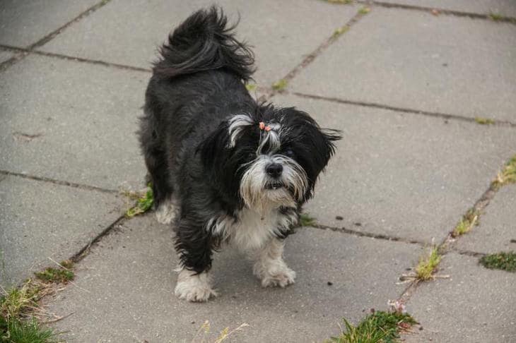 Dette billede – en hund, der i hast graver et hul under en busk for at gemme en skat i ...